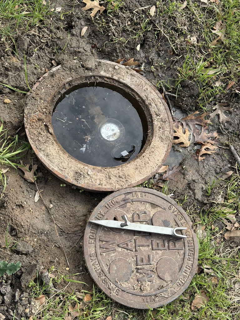 I had to complain to the city again about the water meter leaking. Full of water and one of the plumbers was on her hands and knees with a whipped cream cup scooping out multiple gallons.